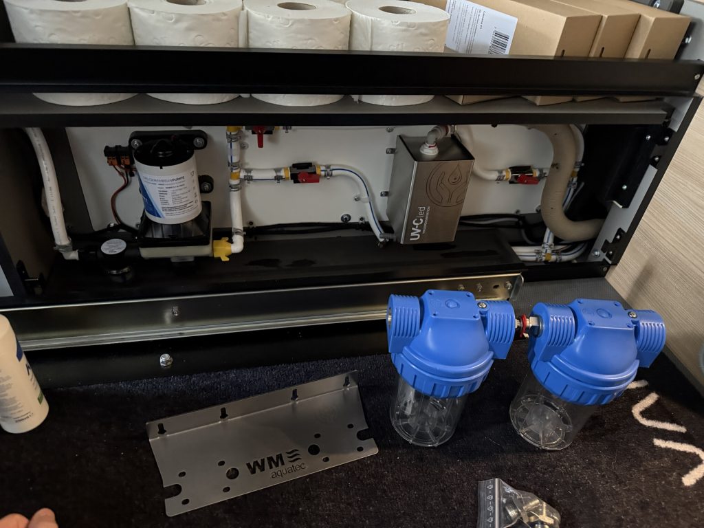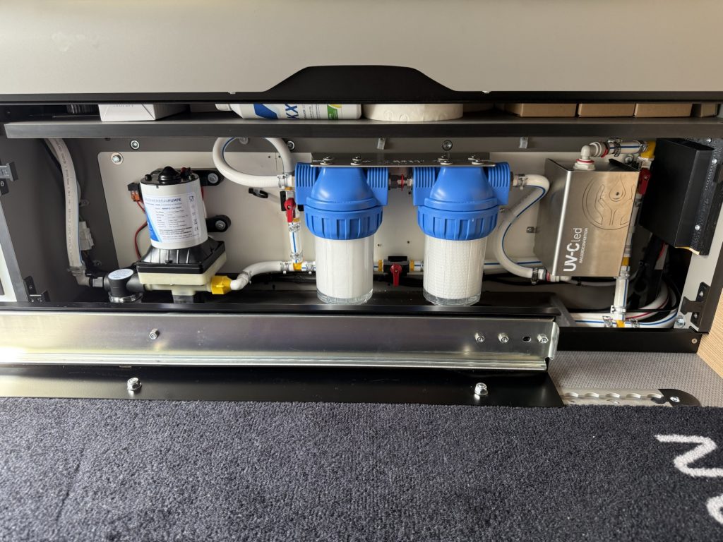 Da ich in meinem Camper das Wasser nicht nur zum Duschen und Kochen, sondern auch zum Trinken verwenden möchte, habe ich „ab Werk“ eine UV-Desinfektionsanlage mitbestellt.