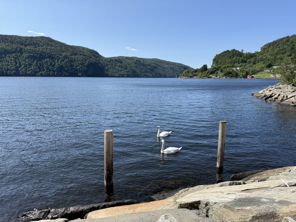 Nach etwas über 2 h Aufstieg hatte ich es dann auch endlich geschafft und war am berühmten Predigtstuhl/Preikestolen angekommen. Es hatte sich bereits eine Schlange für das berühmte Foto vorne auf der Spitze gebildet – aber das musste ich nicht haben.