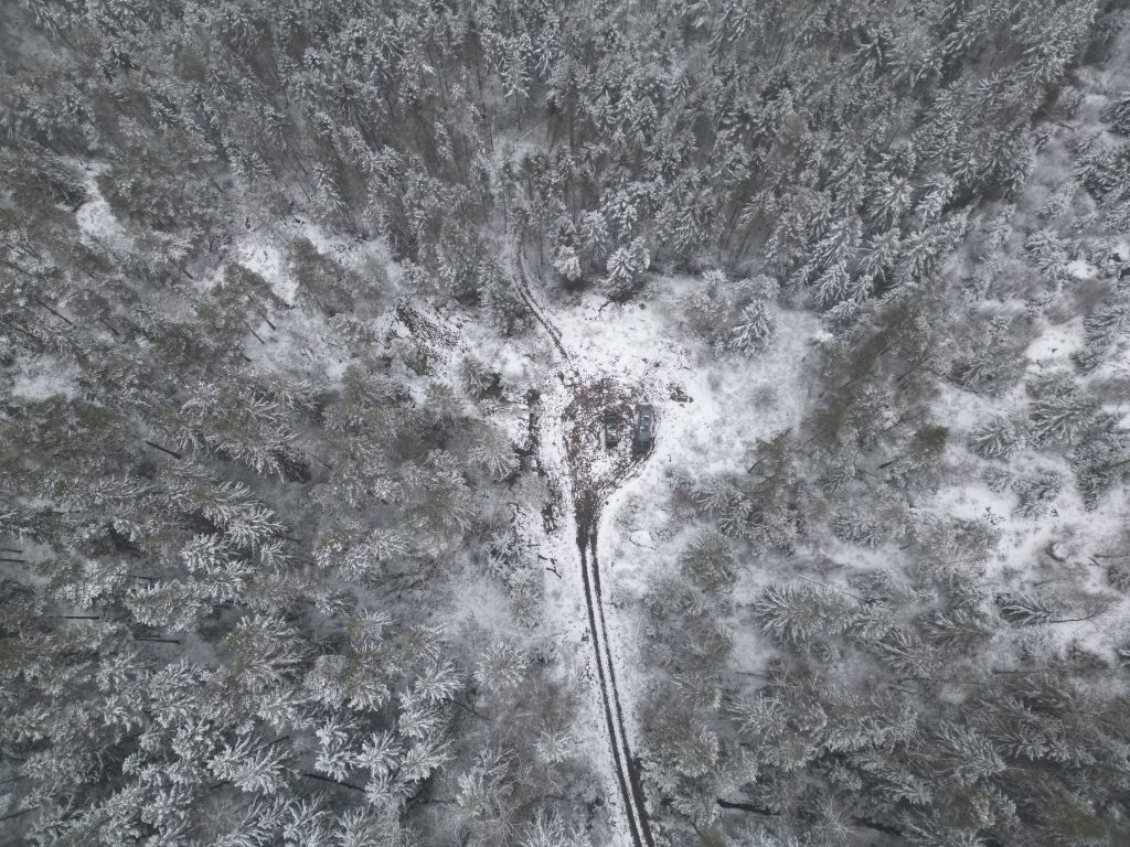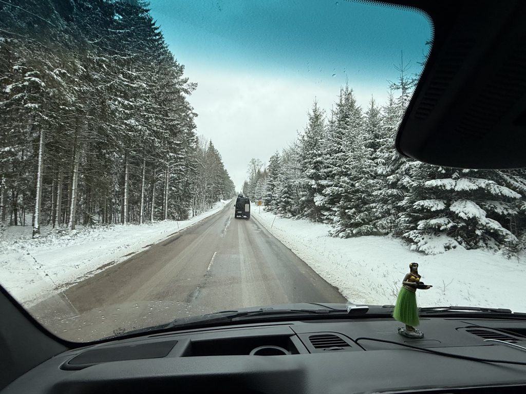 Der Schneefall hat den Rückweg durch den Wald glücklicherweise nicht erschwert – wir kamen problemlos zurück zur Landstraße.
