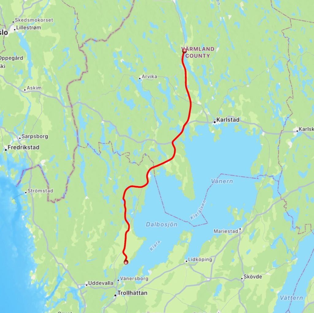 Weiter geht’s auf die Landstraße, die uns zurück zur E45 in Richtung Göteborg führt – und dort wartet die Fähre nach Hause – Urlaubsende 🙁