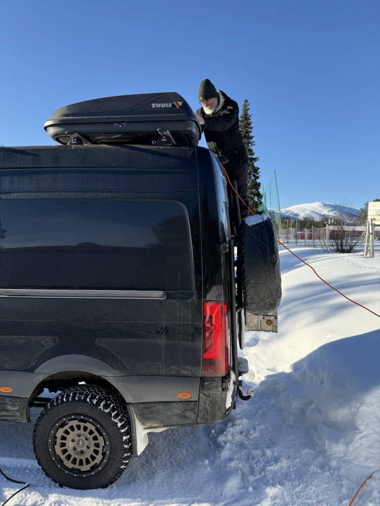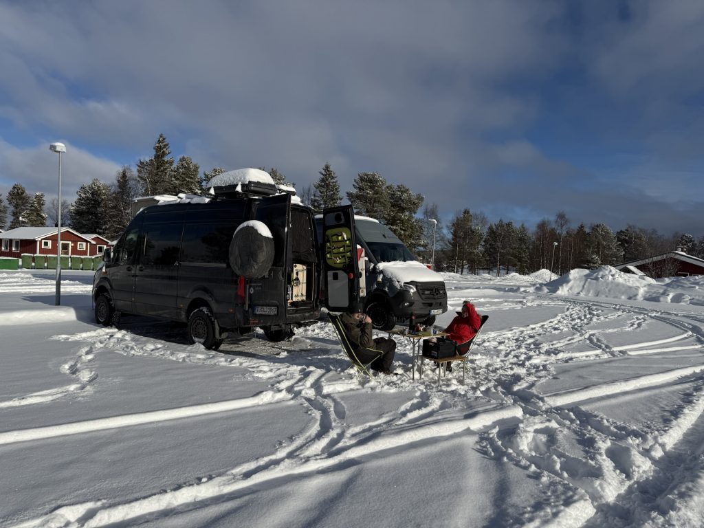 Martin, der gerade in Arjeplog zur Wintererprobung weilte und im Hotel am Campingplatz wohnte, kam noch auf einen Plausch vorbei – klasse!