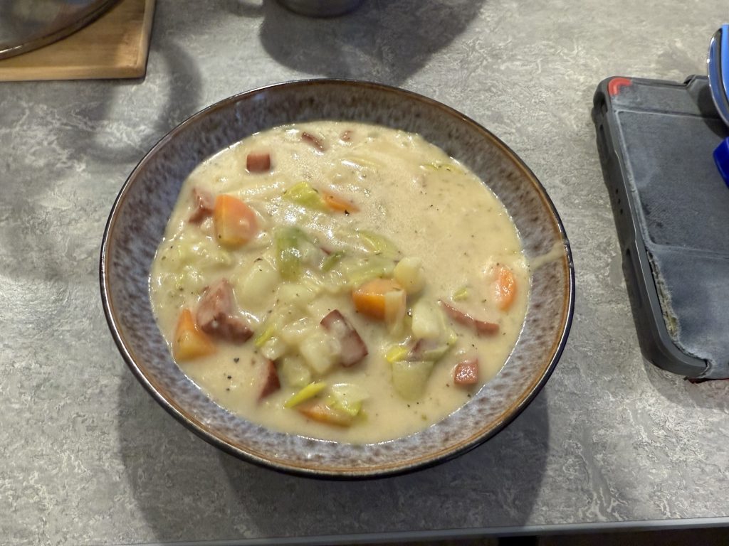 Köstliche Kartoffel-Lauch-Suppe mit Stückchen der Falun-Wurst 😋