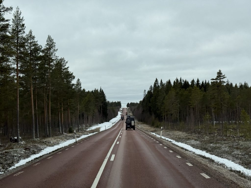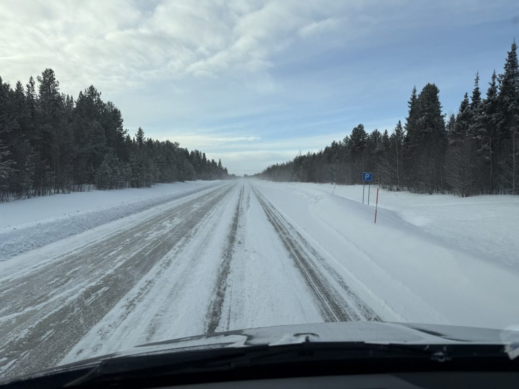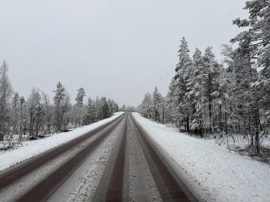 Um 8:35 Uhr machen wir uns auf den recht langen Weg nach Arjeplog bei nicht ganz optimalen Straßenverhältnissen.