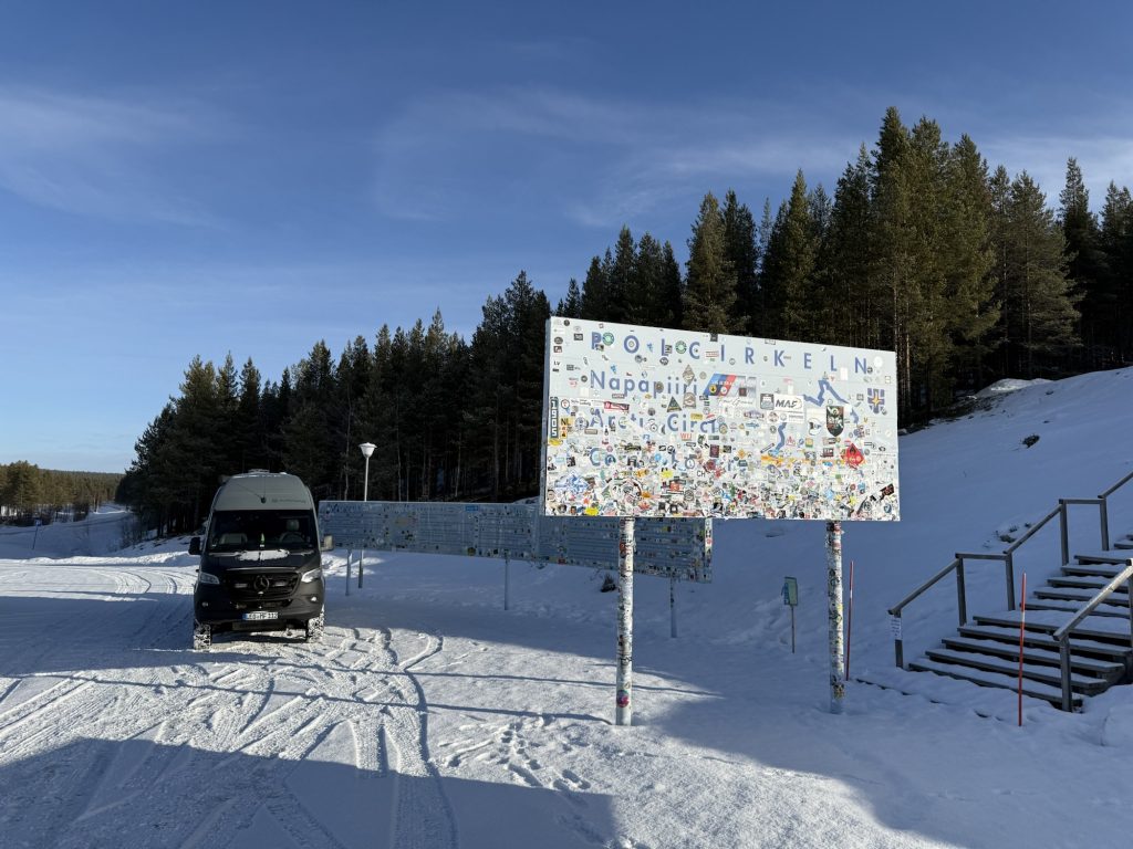 Am Polarkreis wurde dann pünktlich der blaue Himmel eingeschaltet, so dass wir die obligatorischen Fotos machen konnten.