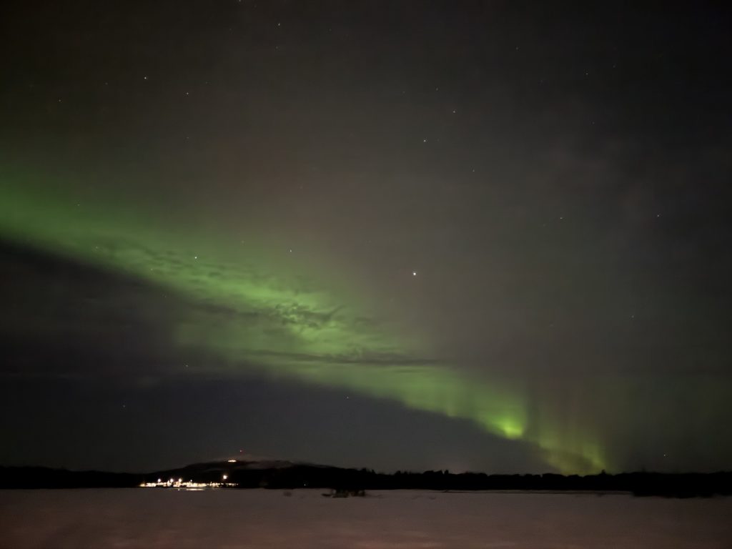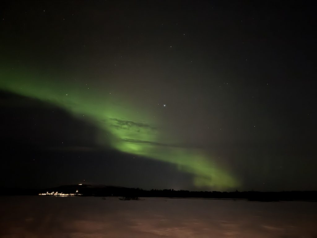 Als wir uns dann abends verabschiedet haben und vor die Tür traten, wurden wir für den langen Tag noch belohnt: Polarlichter!