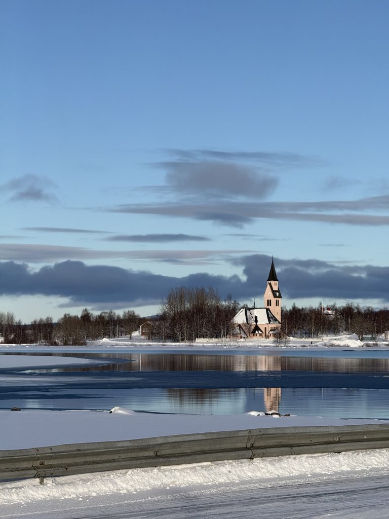 Spät Aufstehen und los geht’s auf einen kleinen Spaziergang um die Kirche und zu einem Kakao im Arjeplog Vilt & Kafé.