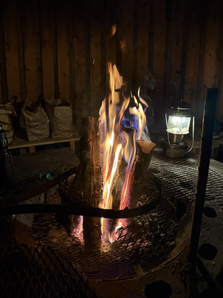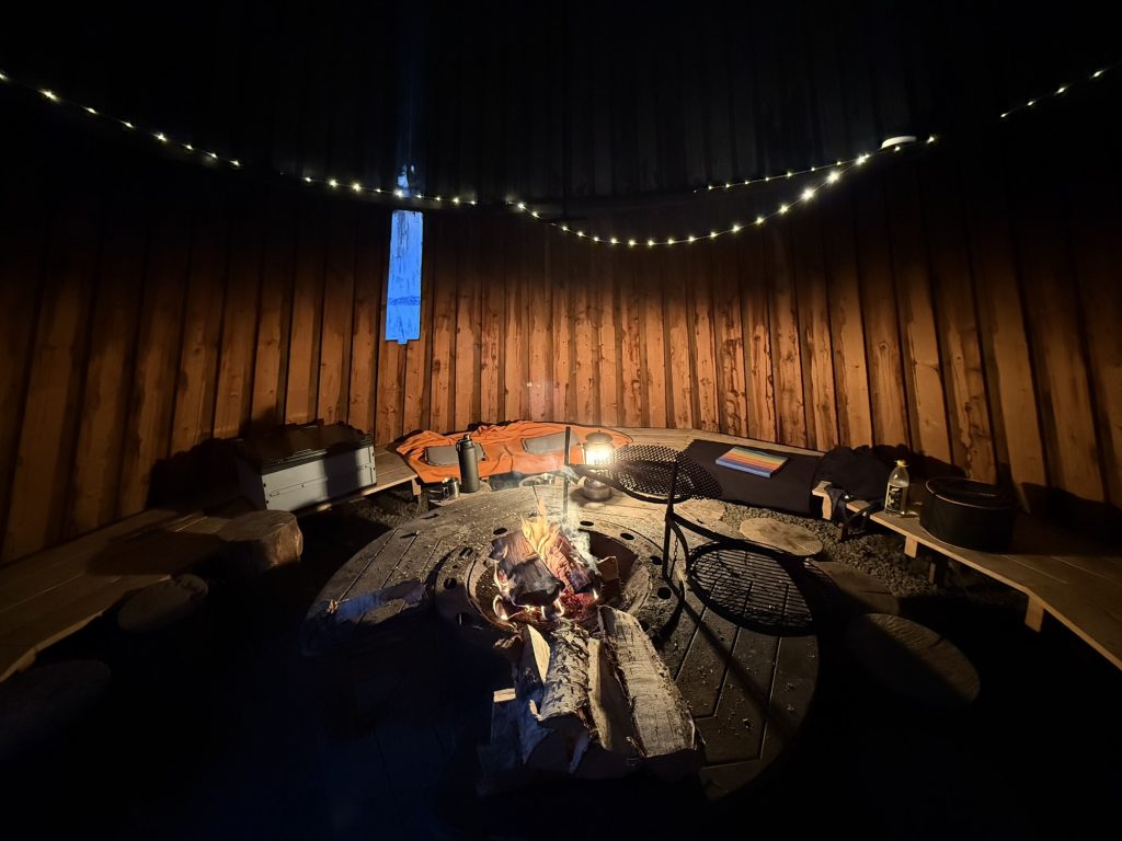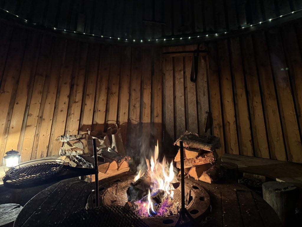 Der Platz hat direkt am Ufer des Sees liegende Stellplätze und eine schöne Grillhütte. Das mussten wir nutzen und haben gleich mal ein Feuerchen gemacht.
