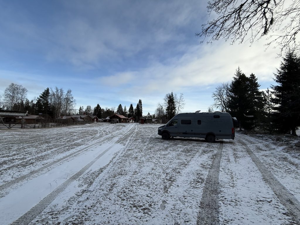 Angekommen in Lillhärdals Camping haben wir zunächst beraten, ob wir wirklich auf den tief verschneiten Platz fahren sollen – sollte aber kein Problem sein, dort auch wieder weg zu kommen.