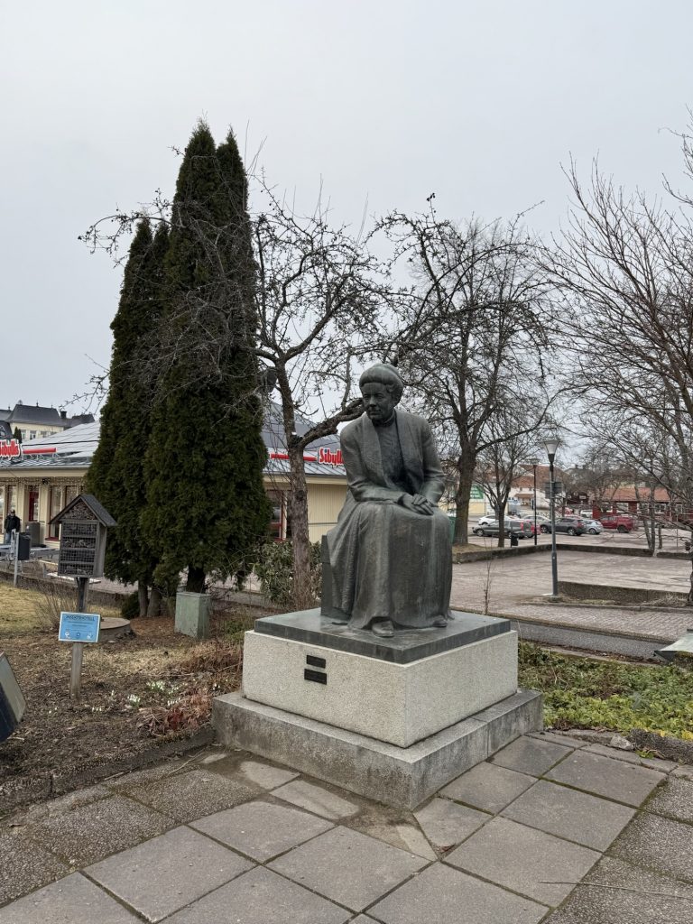 Auf dem Rückweg zum Campingplatz kamen wir noch an der Skulptur der Schriftstellerin und Literatur-Nobelpreisträgerin Selma Lagerlöf (Nils Holgersson) vorbei, die etwas außerhalb des Stadtgebietes von Sunne im Herrenhaus Mårbacka geboren wurde und einen großen Teil ihres Lebens dort verbrachte.