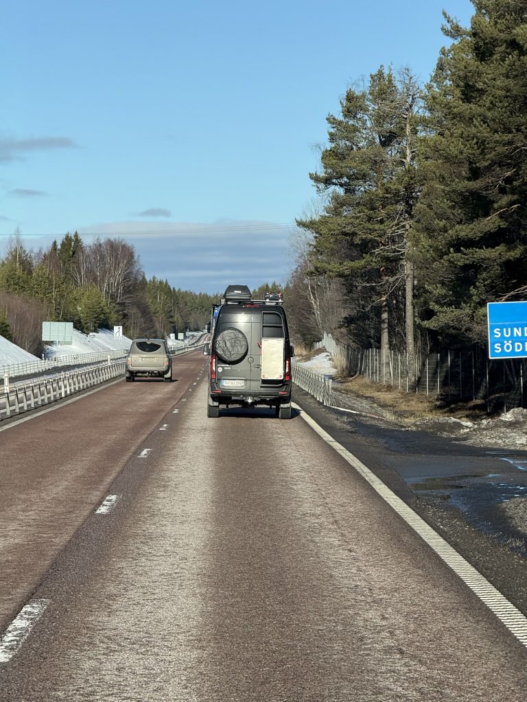 Nach einer ruhigen Nacht im Wohngebiet in Uppsala ging es nach einem Morgenkaffee bei Sonja auf den Weg nach Norden. Noch immer ist auch hier in Schweden kaum Schnee zu finden.