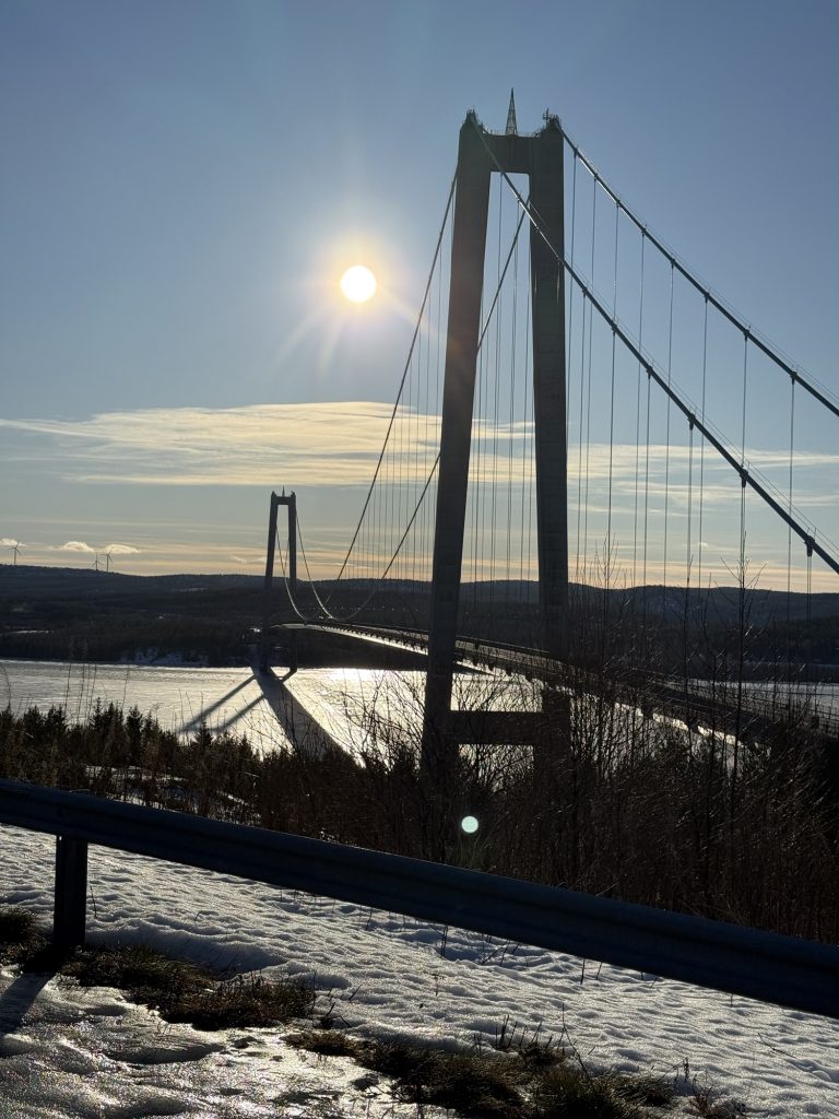 Weiter geht’s bis zur Mittagsrast an der Högakustenbron, einer großen Hängebrücke über den Fluss Ångermanälven.