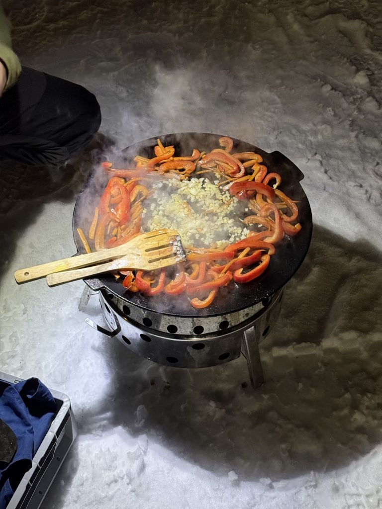 Ulf hat ein Feuerchen gemacht und uns ein leckeres Abendessen bereitet.