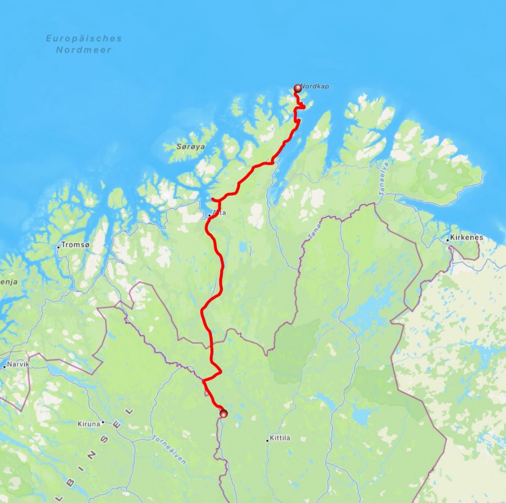 In Muonio sind wir aufgrund der Zeitverschiebung von einer Stunde zu Schweden/Norwegen schon um kurz nach 7:00 aufgebrochen, um ausreichend Fahrtzeit in den höchsten Norden zu haben.