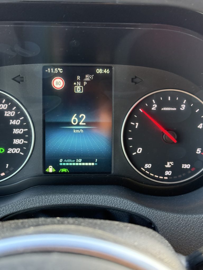 Also Ulf und Angela über Funk zu Hilfe gerufen, Straße abgesichert, den 6 m Sprinter vorgespannt und: Glück gehabt! Der frische Schnee hat die vereiste Straße ausreichend griffig gemacht, so dass der Sechszylinder seine Kraft völlig ohne Schlupf auf die Straße gebracht hat. Nochmal Glück gehabt!