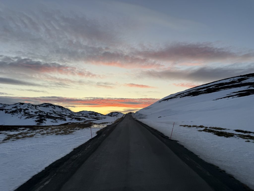 Der Sonnenuntergang bescherte uns wunderschöne Ausblicke – wir konnten uns gar nicht sattsehen und wollten eigentlich überall stehenbleiben, um die Ausblicke zu genießen – aber wir wollten ja auch noch ein bisschen was von dieser Stimmung am Nordkap genießen!