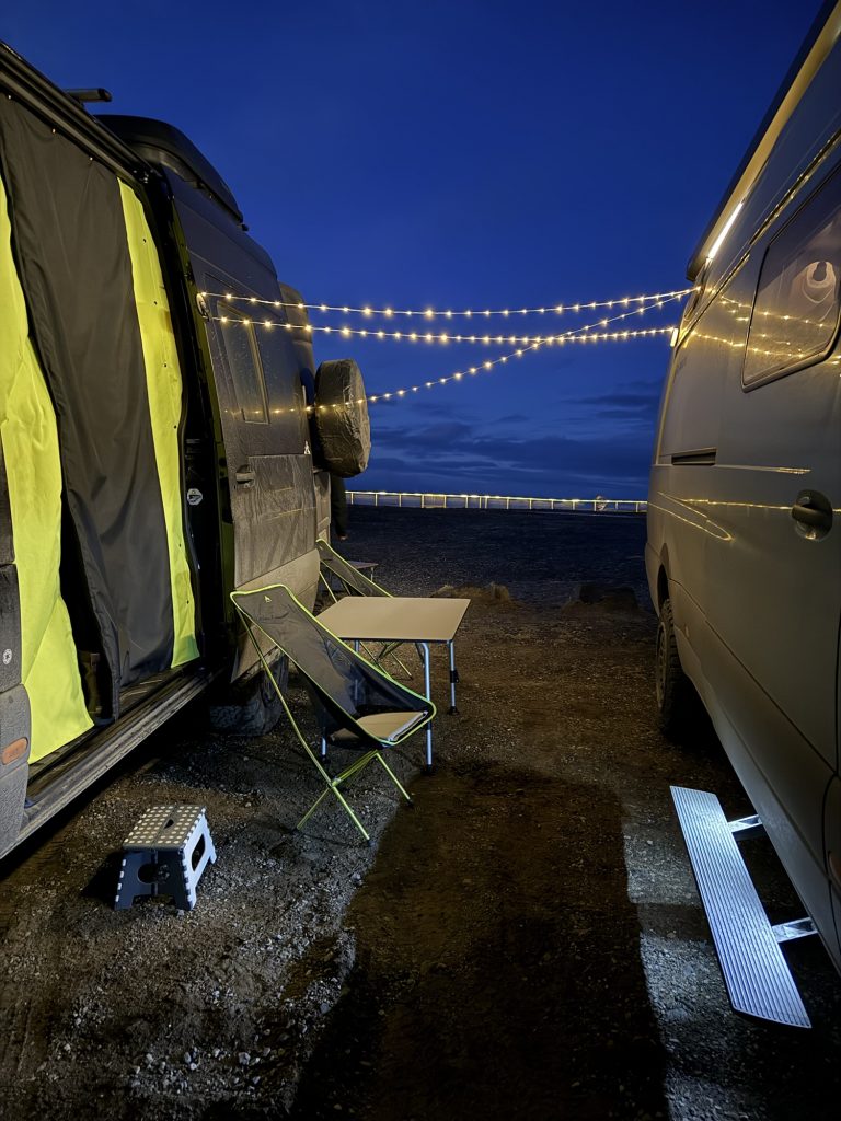 Essen haben wir dann wegen des Windes im Auto gemacht. Ein schöner Abend im Auto und dann ab ins Bett.