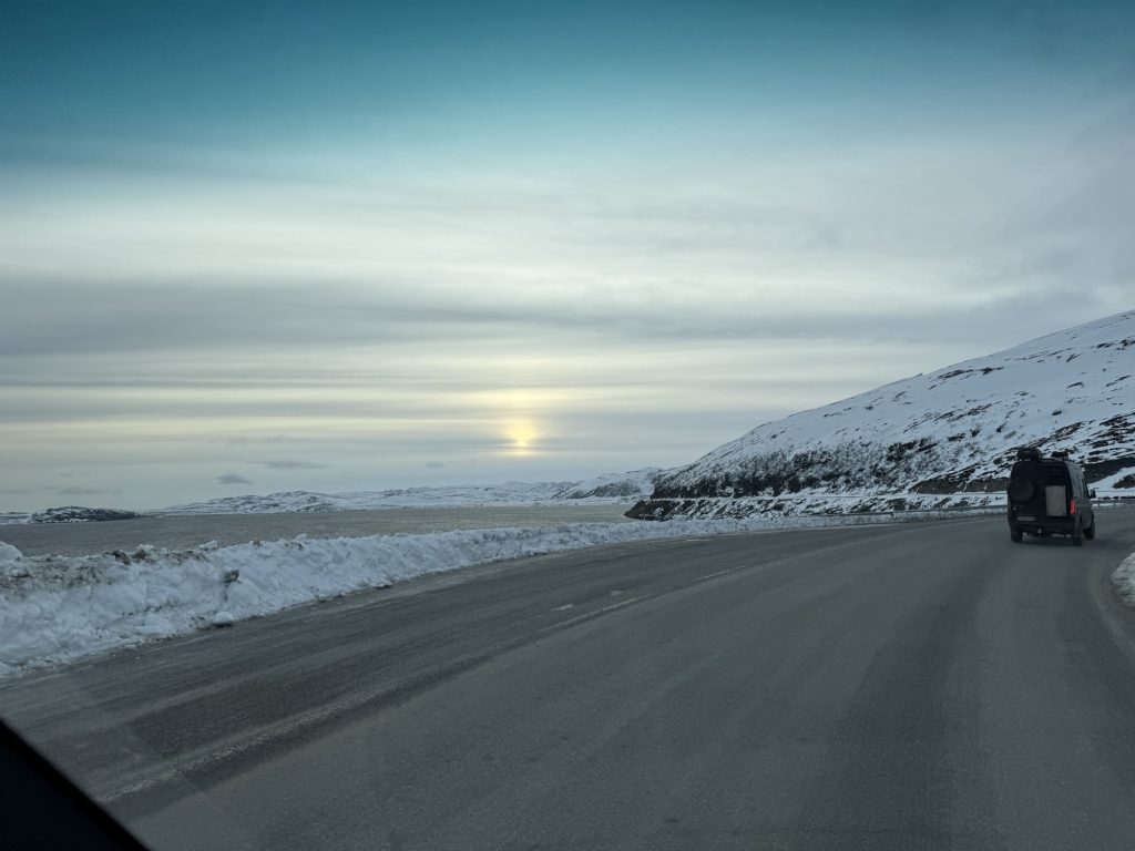 Weiter ging’s in Richtung Nordpolarmeer – ich war ja im Sommer schon einmal hier oben – aber im Winter ist das Ganze noch beeindruckender. Auch oder gerade weil es kein tiefer Winter, sondern eher Frühling ist mit nur noch wenig Schnee sind die Farbkontraste in der Landschaft umso beeindruckender.