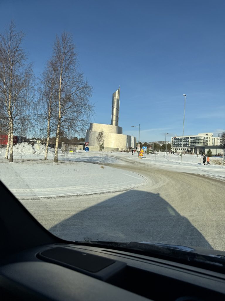 Im Kreisverkehr in Alta fahren wir an der Nordlichtkathedrale vorbei.