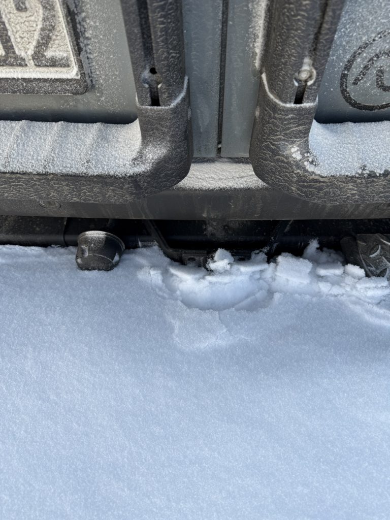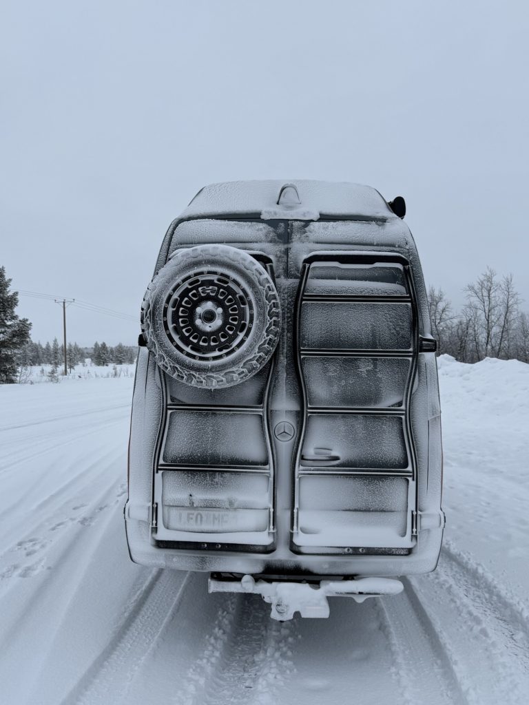 Zunächst fing der Tag recht normal an – wir hatten nachts bis zu -16 °C. Wie von mir erwartet gab es morgens kein Wasser in der Küchenzeile des Campers: Leitungen eingefroren. Im Bad ging alles, damit stand der Haarwäsche nichts im Weg.